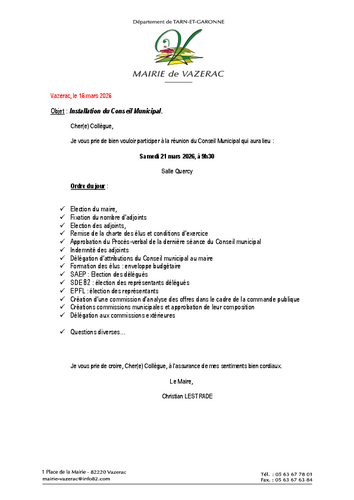 Les élections municipales auront lieu le dimanche 15 mars et le dimanche 22 mars 2026. A Vazerac, elles se dérouleront dans la salle polyvalente de…