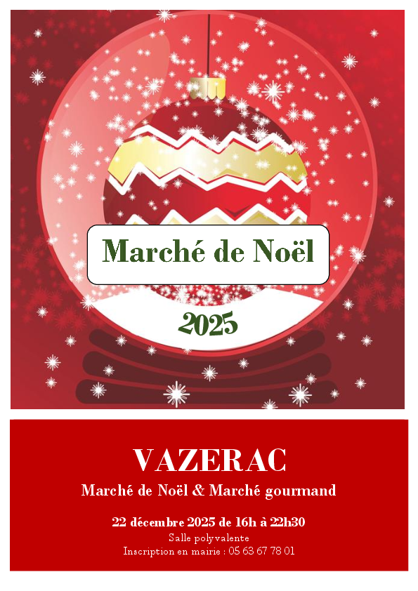 Le marché de nôel et marché gourmand aura lieu le 22 décembre de 16h00 à 22h30 dans la salle polyvalente à Vazerac